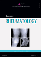 | The Turkish Journal of Rheumatology is indexed in the Science Citation Index Expanded (SCIE), Embase, Scopus, the Cumulative Index to Nursing and Allied Health Literature (CINAHL Plus), Index Copernicus, Academic Onefile (Gale/Cengage Learning), EBSCO Academic Search Premier, EBSCO Academic Search Complete, Directory of Open Access Journals (DOAJ), and ProQuest Periodicals Index Online (PIA), CiteFactor, Tubitak/Ulakbim Turk Tip Dizini, Turk Medline, and Turkiye Atif Dizini Turkish databases. | ||||||||||